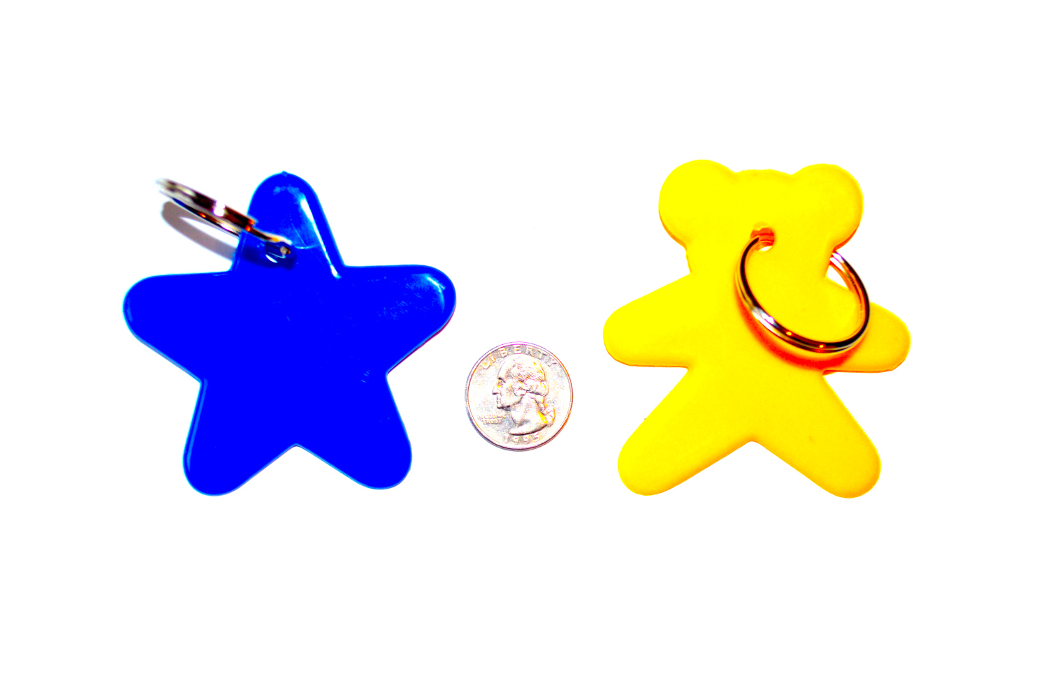 Key Ring Tags are approximately 3 inches and made out of plastic with a 1 1/4" key ring attached.
